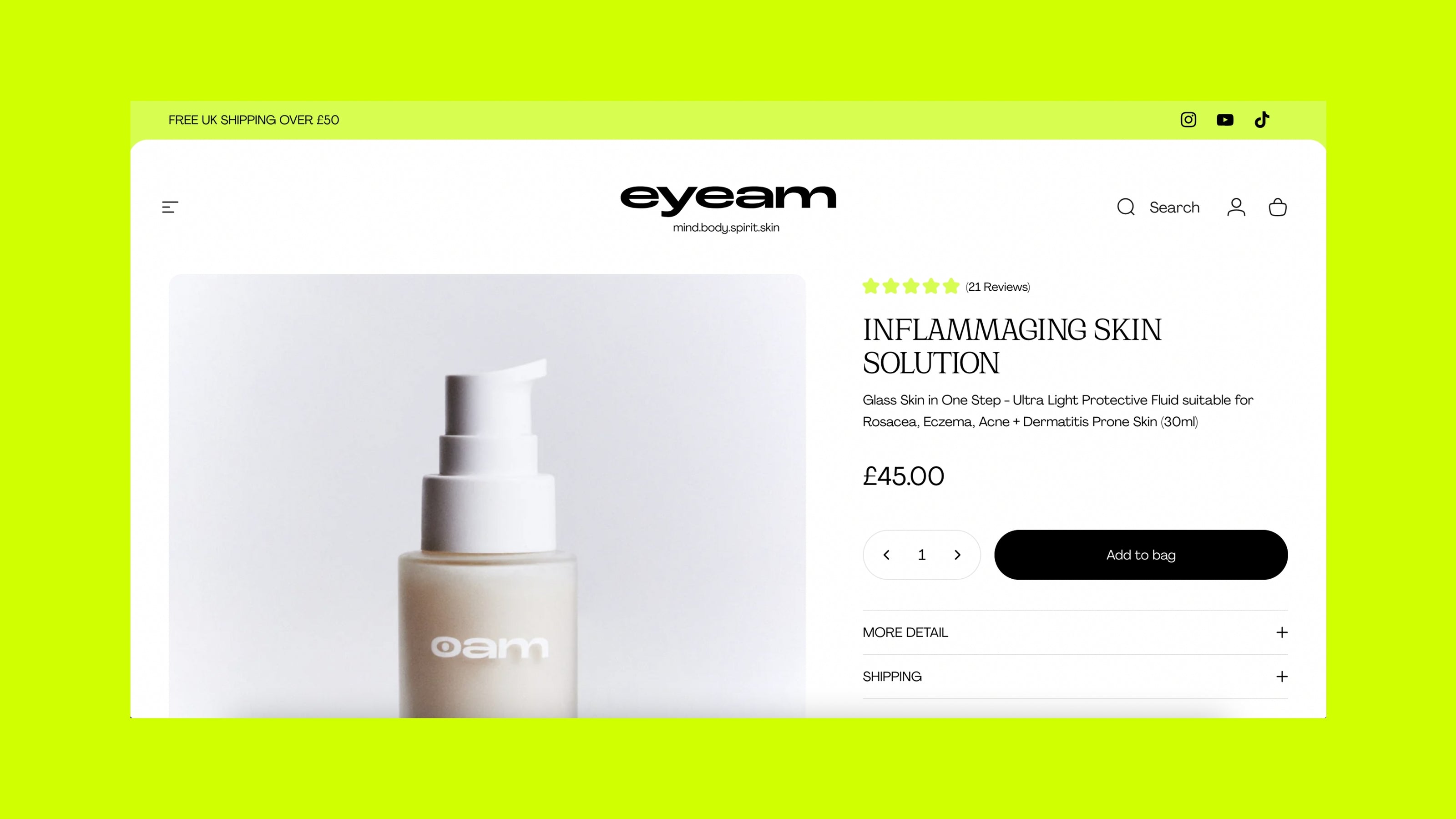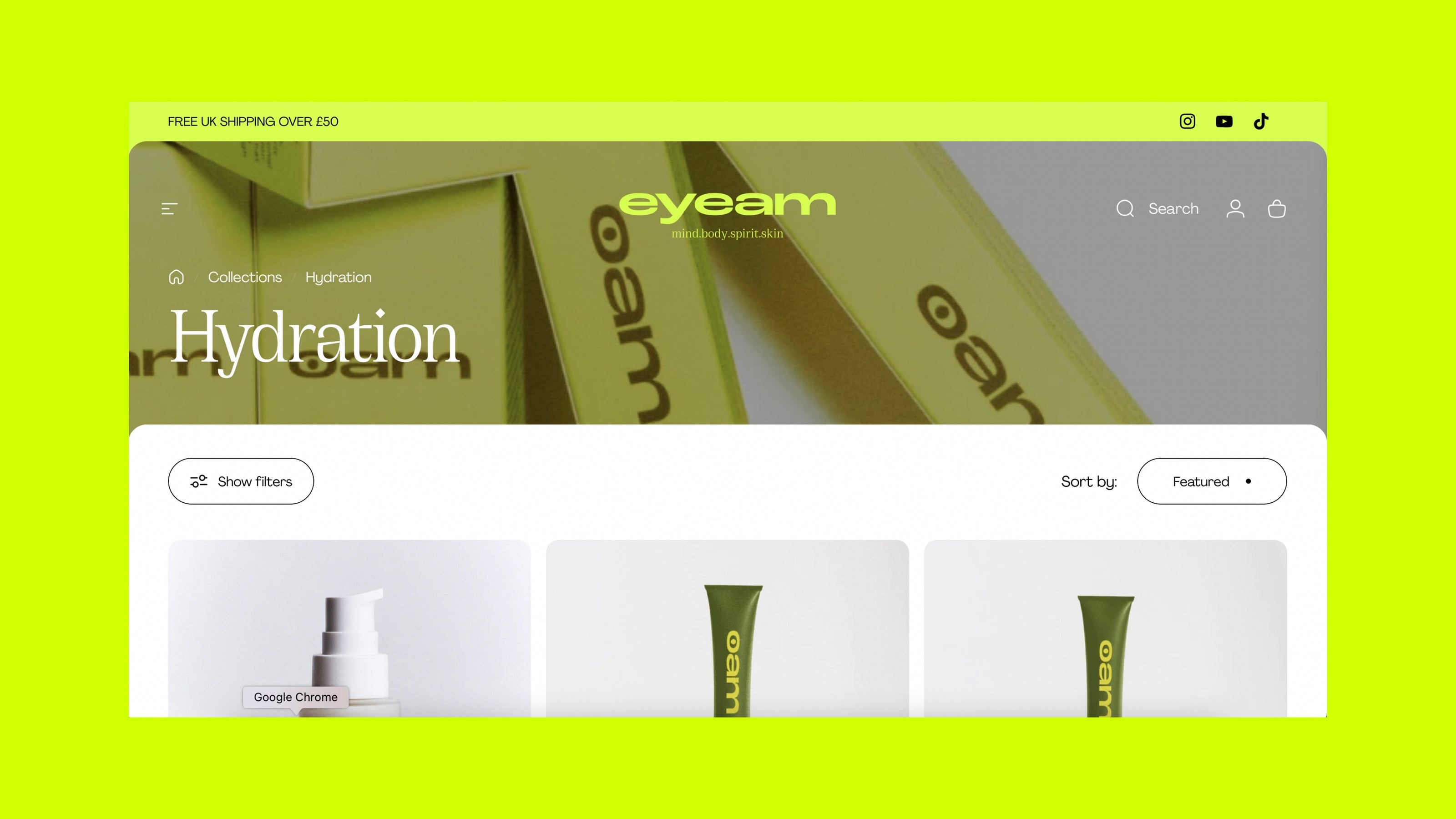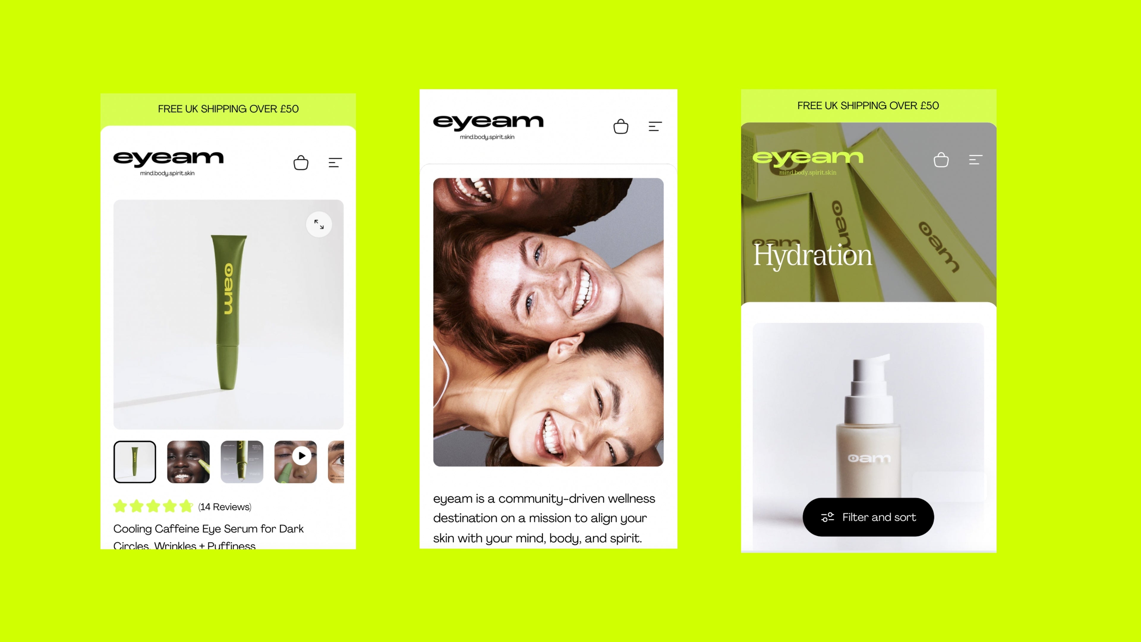 As an emerging brand, there was an opportunity to approach Eyeam's development from a completely fresh perspective. From the outset, it was essential to build a website that would incorporate specific functionality to cultivate and nurture a core customer base, while delivering a UX experience that would target a defined audience and showcase the brand distinctively.