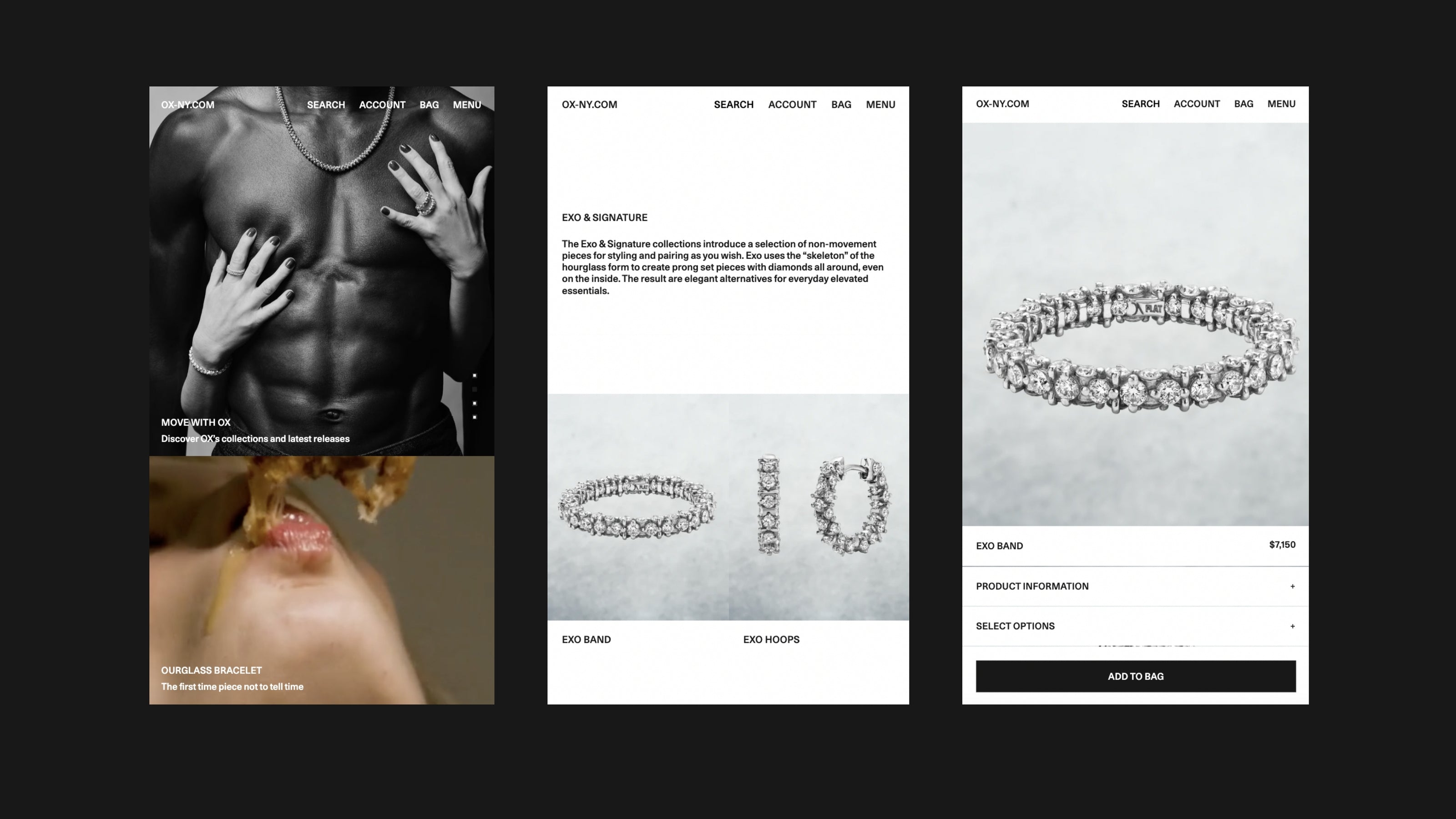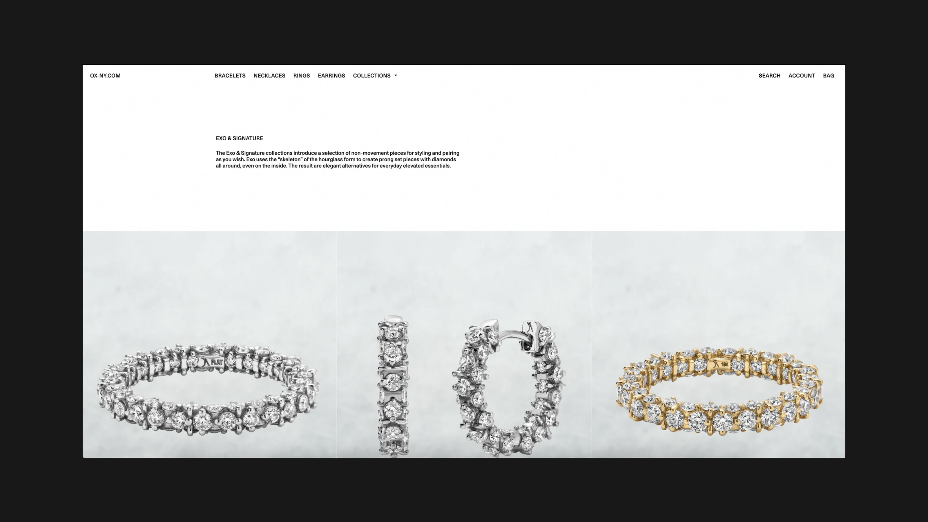 Bounce was tasked to develop a new website for OX. The brief was clear: create a site that would capture the essence of OX as a brand with precision and style. Featuring an intuitive collection and database structure, the website strikes a perfect balance between seamless functionality and refined design elements that showcase the brand's distinctive character.